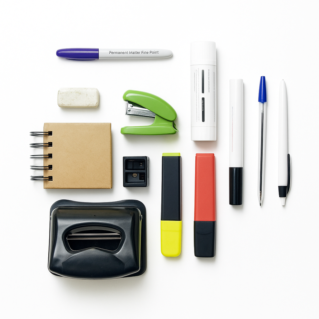 - Other small supplies: Disposable and reusable tape dispensers, glue sticks, correction fluid bottles, and other correction supplies