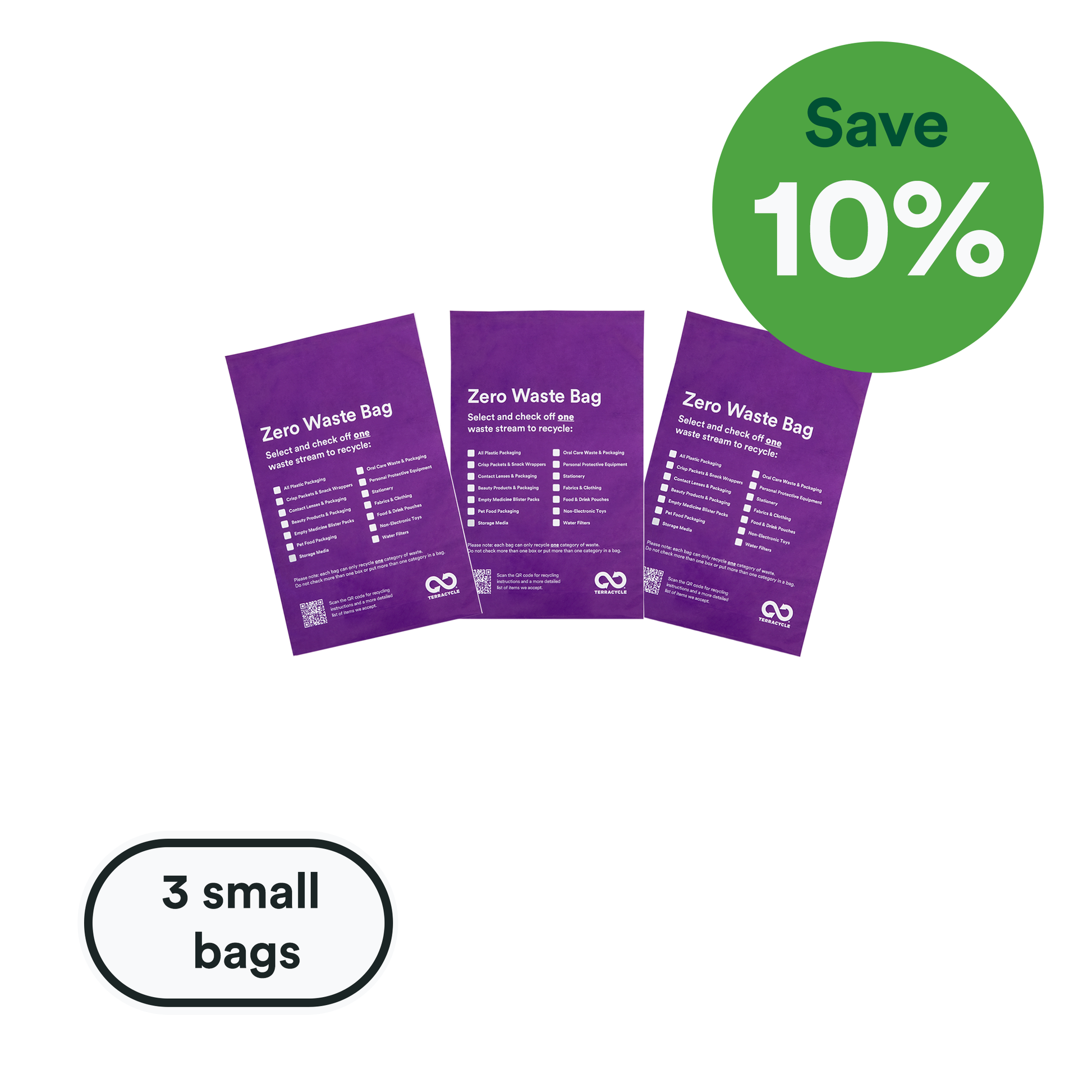Fantastic to have a convenient way to recycle all the tricky-to-recycle items that I've been stuck with for so long; clutter cleared without the guilt. I ordered 3 small bags to start with but realised I needed a larger size for all the blister packs I had saved (hard to find Superdrug near me) so had to go back and order more - but then used the small bags anyway for different items as they need to be separated into different types.